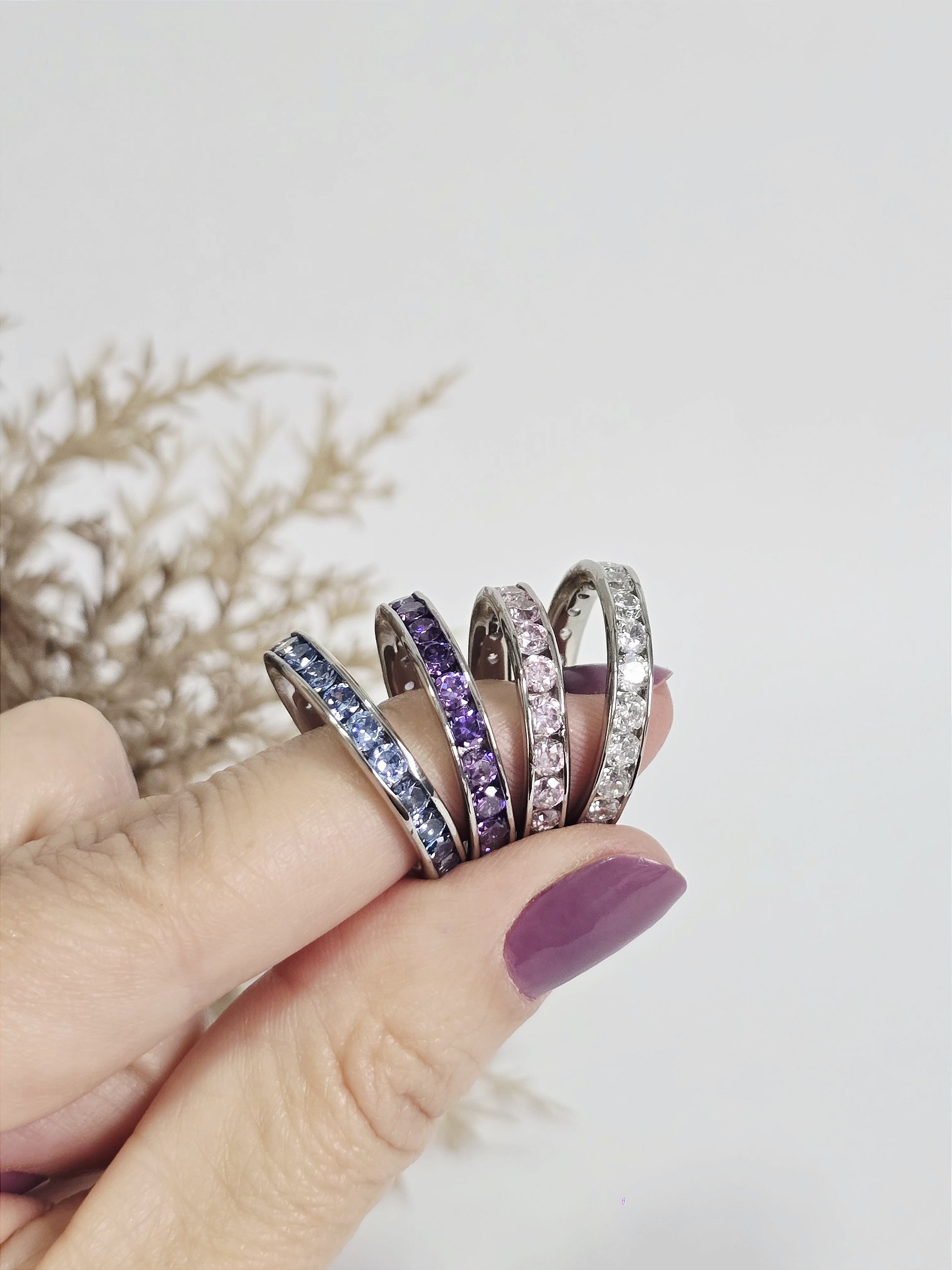 Anéis com Zircônias Coloridas em Aço Inoxidável
