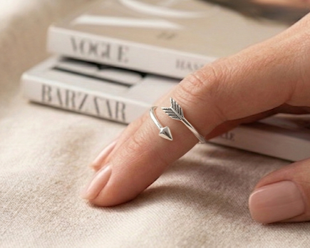 O Anel de Falange Seta é feito em Prata 925 legítima com acabamento impecável e design aberto. A extremidade apresenta a ponta da flecha e as penas, criando uma peça delicada e contemporânea.
