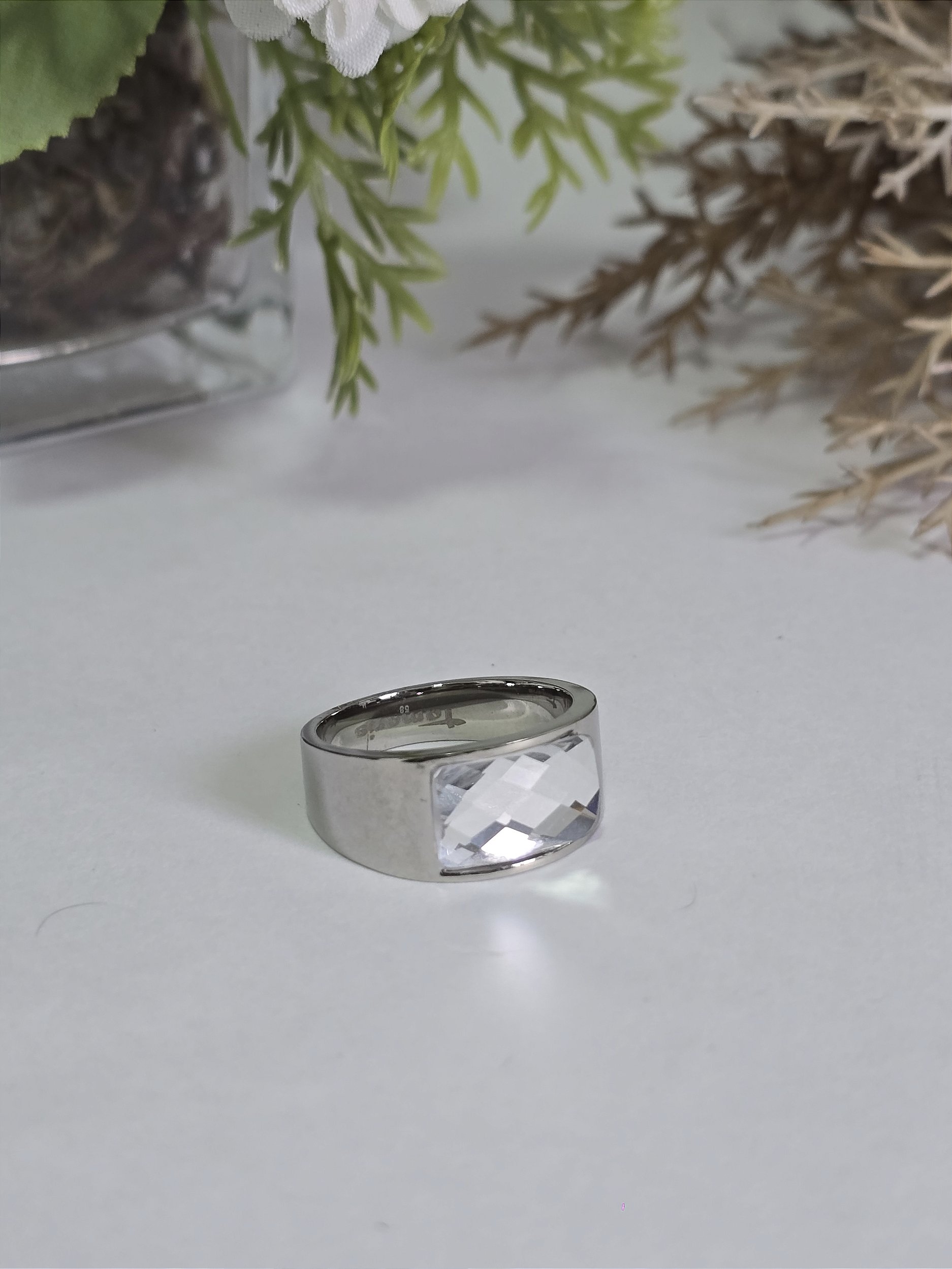 Moderno e sofisticado, este anel em aço inoxidável prateado é adornado com uma pedra facetada que reflete a luz de maneira única, criando um brilho elegante e marcante. Disponível em diferentes tonalidades, é a peça ideal para quem busca estilo com versatilidade. Produzido em aço inoxidável, garante durabilidade: não enferruja, não perde a cor, não escurece e não causa alergias.