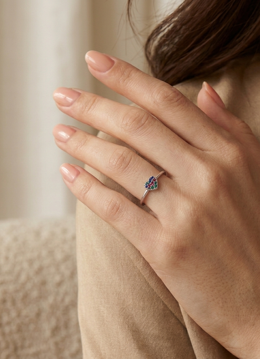 Dê um toque de cor e alegria ao seu mix de joias! O nosso Anel Coração Colorido em Prata 925 é a escolha ideal para mulheres que amam acessórios vibrantes e cheios de personalidade. Com um design delicado, o coração central é meticulosamente cravejado com um mix de zircônias em tons de azul, verde e rosa/pink, criando um efeito "rainbow" sofisticado que remete a pedras preciosas como safiras e esmeraldas.