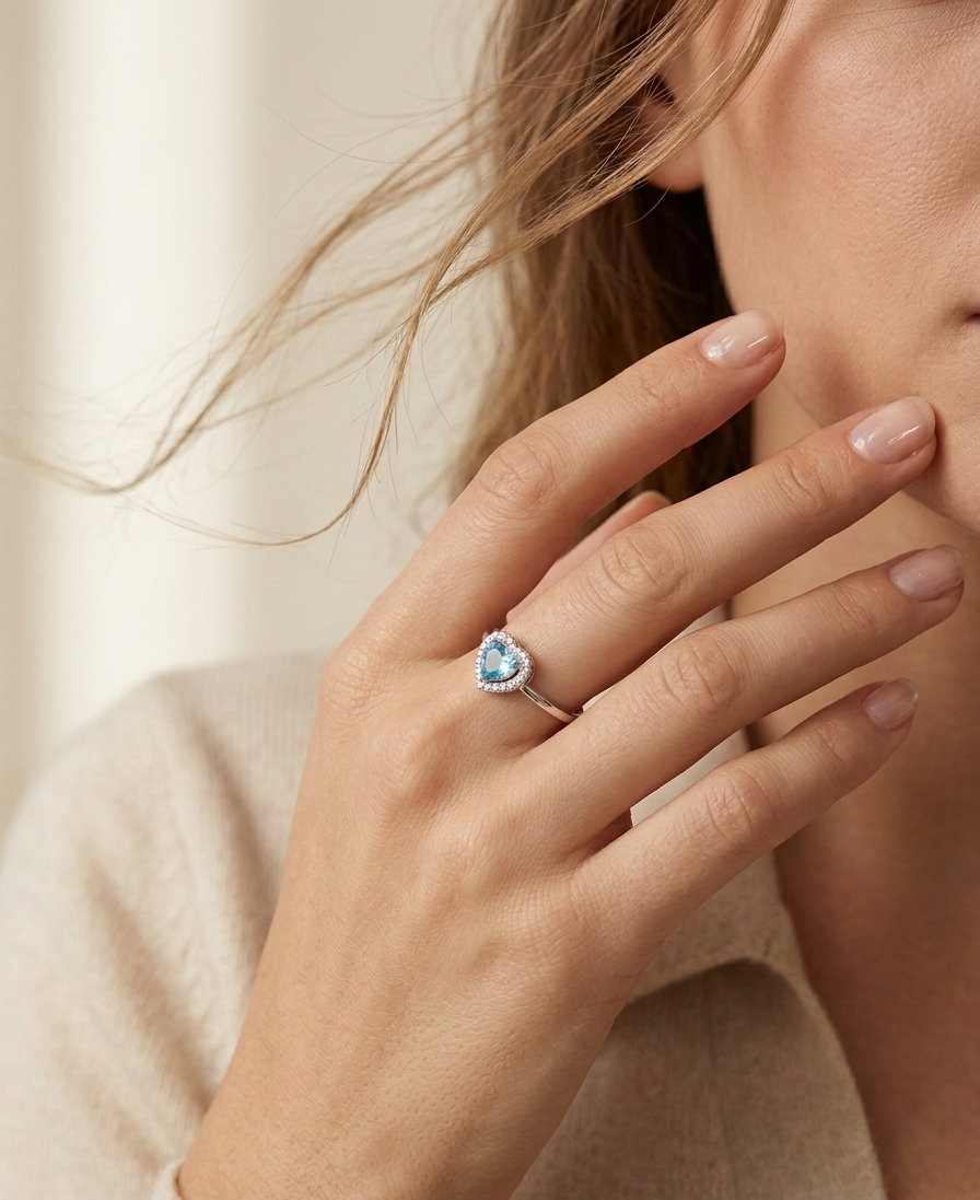 Delicado, vibrante e encantador — o Anel Coração de Cristal Cravejado em Prata 925 é a joia que faltava para trazer um ponto de cor e luz ao seu dia a dia. Com um design romântico, ele apresenta um cristal central em formato de coração, envolto por uma moldura de microzircônias que potencializa o seu brilho.