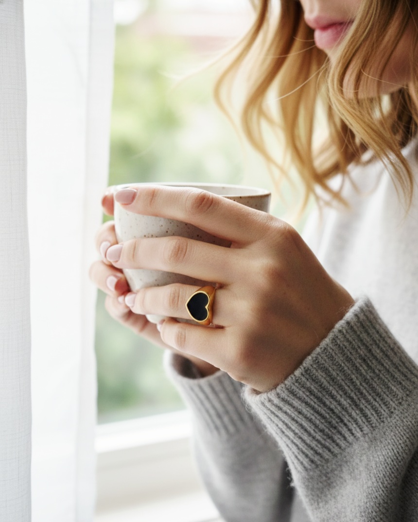 O Anel Coração Preto em Aço Inoxidável é a união perfeita entre estilo moderno e um toque romântico. O destaque fica por conta do coração com acabamento preto esmaltado, criando contraste sofisticado com o brilho metálico do aço. Uma peça marcante, ideal para quem gosta de acessórios com personalidade.