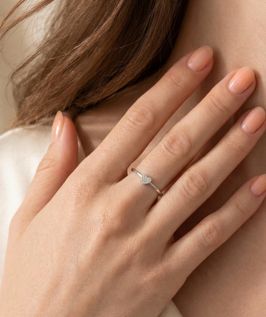Anel Coraçãozinho Cravejado, Prata 925, Aro 14