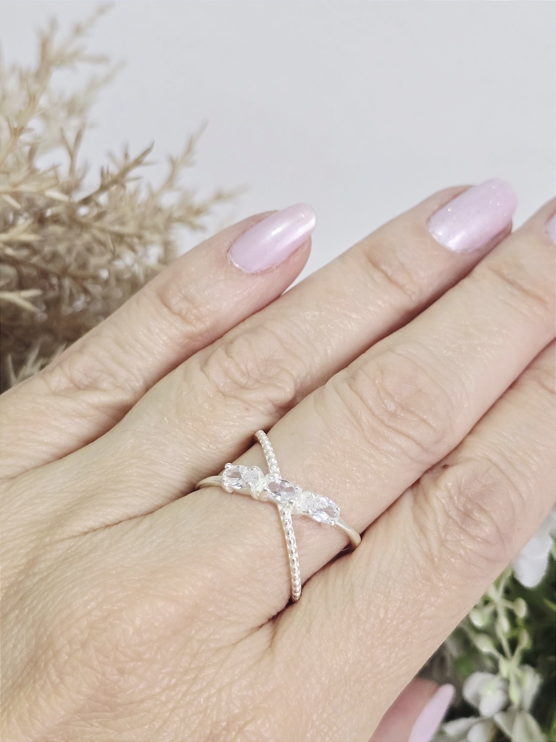 O Anel Cruzado com Zircônias em Prata 925 combina elegância e modernidade em um design leve e delicado. Suas hastes se cruzam com harmonia, formando um “X” sofisticado — uma lisa e outra cravejada por zircônias brilhantes que refletem a luz com sutileza.