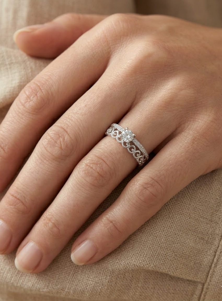 Romântico, versátil e sofisticado — o Anel Duplo Corações com Solitário em Prata 925 é a joia perfeita para quem ama a tendência de usar vários anéis juntos, mas busca a praticidade de uma peça única. Seu design inovador simula o uso de dois anéis distintos que se complementam em harmonia: de um lado, uma fileira contínua de pequenos corações vazados traz delicadeza; do outro, um aro liso sustenta uma zircônia solitária central em lapidação brilhante.