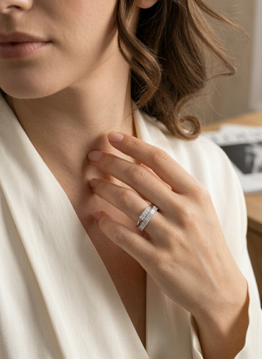 Anel Duplo Navetes Zircônia em Prata 925