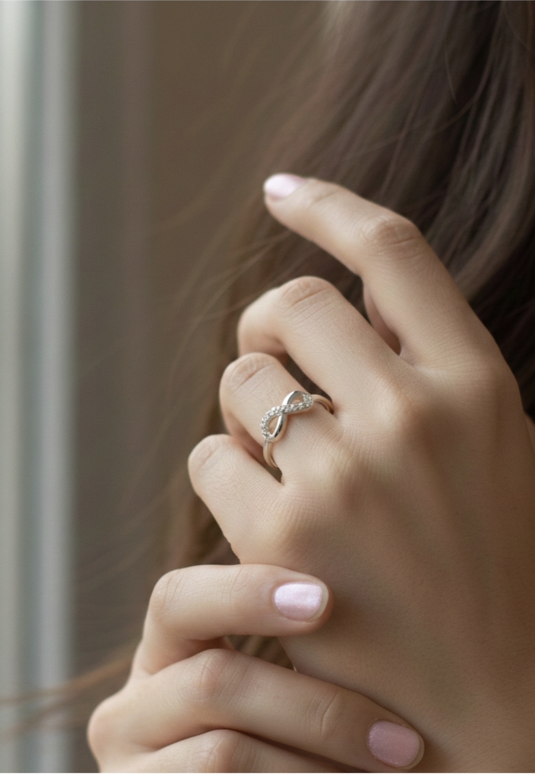 Inclui 1 anel infinito cravejado em prata 925, pronto para uso ou presente.