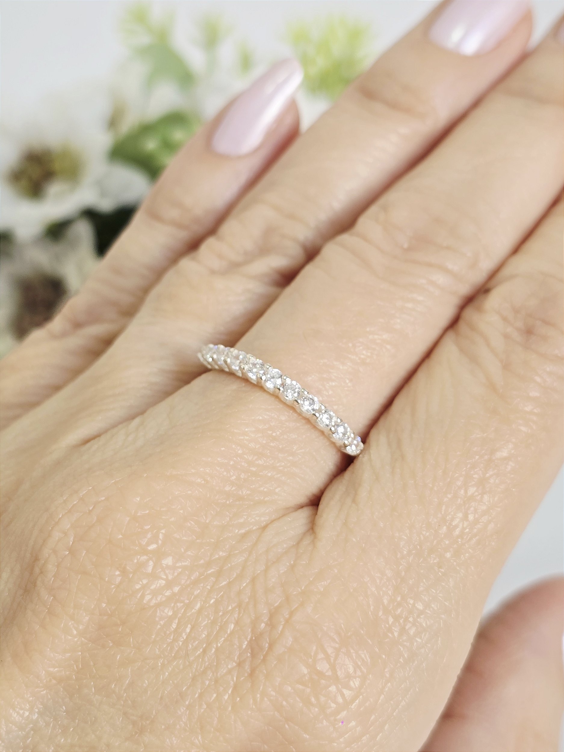 Clássico e sofisticado, este anel meia aliança em prata 925 apresenta fileira de zircônias brilhantes que proporcionam um toque de luminosidade delicada e elegante. Uma joia atemporal que combina com qualquer estilo, ideal tanto para o dia a dia quanto para ocasiões especiais.
