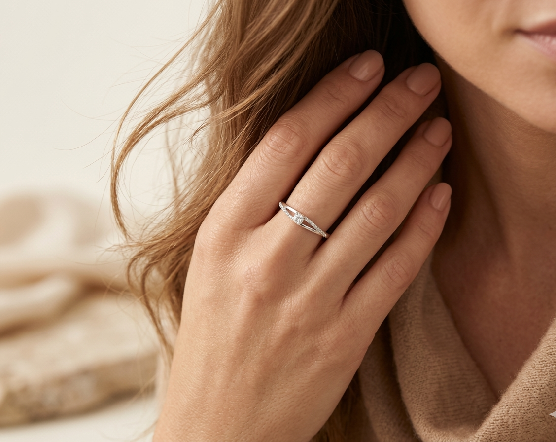 Elegante, moderno e envolvente — o Anel Solitário Cruzado em Prata 925 é uma reinterpretação contemporânea do clássico anel solitário. O destaque desta joia é o design fluido do aro, que se divide e cruza delicadamente antes de se unir para abraçar a pedra central, criando um visual dinâmico e sofisticado.