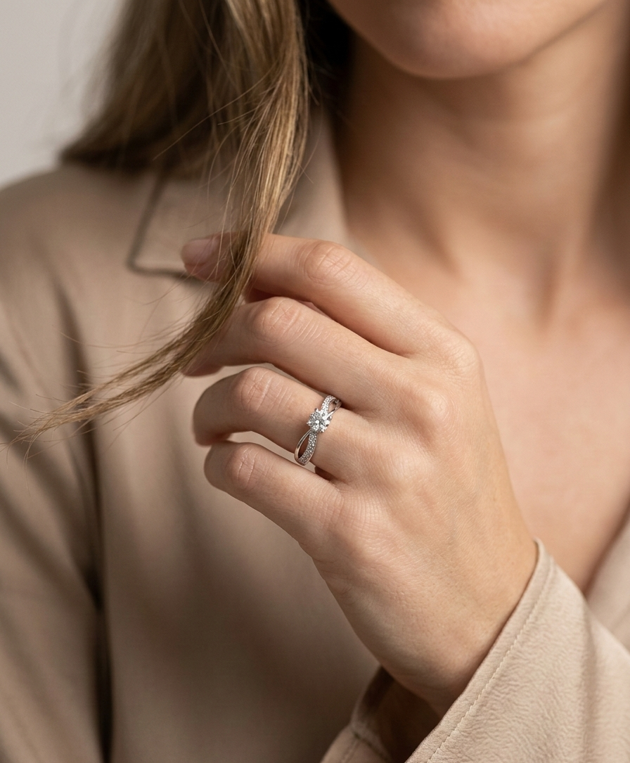 O diferencial está em seu aro vazado e cravejado, que traz um movimento fluido e moderno à peça, garantindo um brilho extra em todos os ângulos. Produzido em Prata 925 autêntica, é uma joia hipoalergênica e de alta durabilidade, ideal para celebrar momentos inesquecíveis ou para elevar a elegância de qualquer composição.