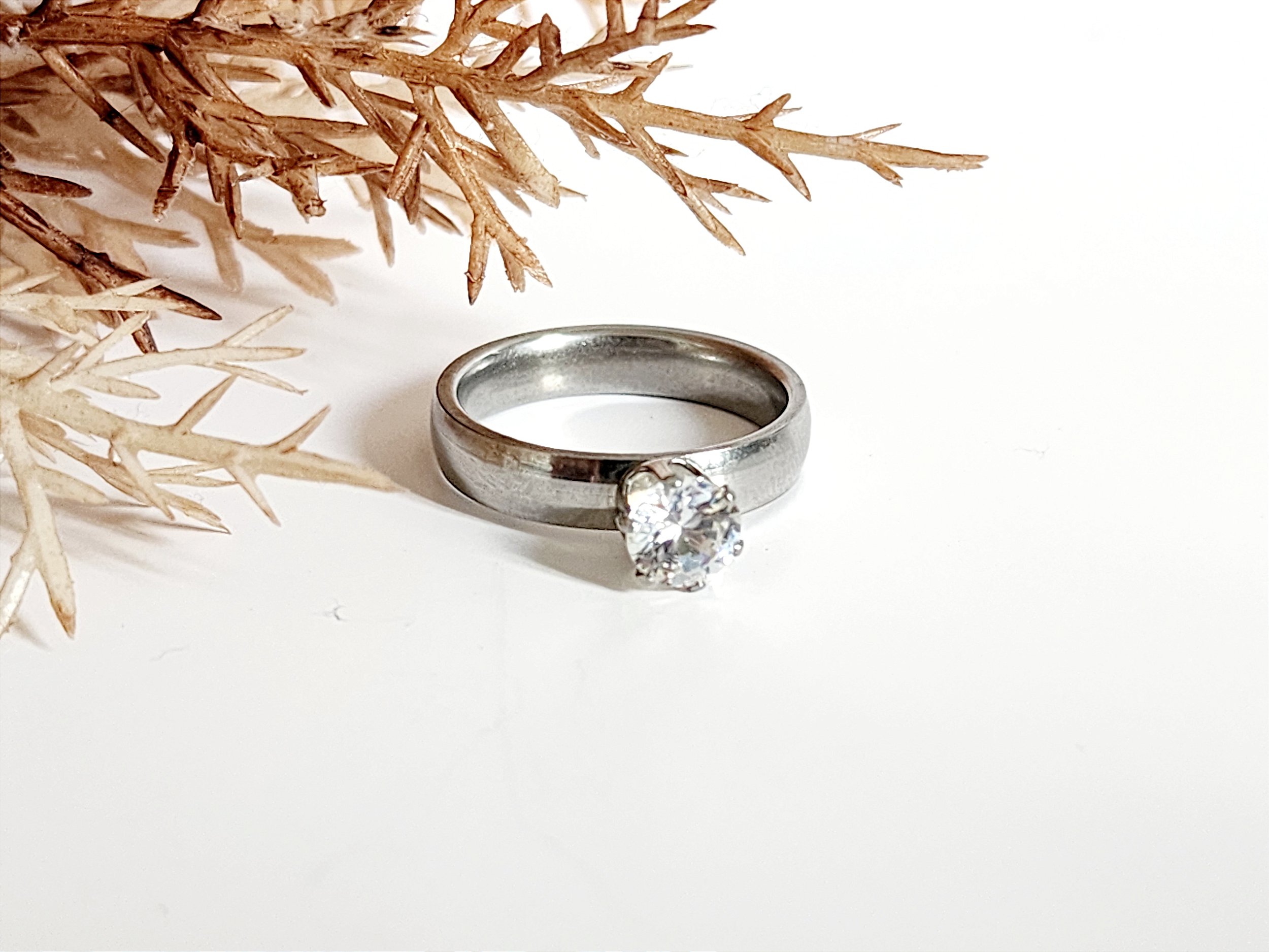 Anel Solitário Largo em Aço Inoxidável, Aro 17