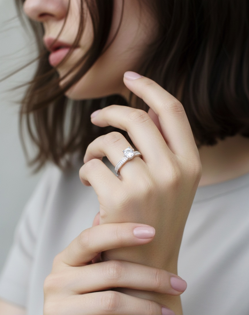 O Anel Solitário Luxuoso é um clássico deslumbrante, perfeito para celebrar momentos especiais, noivado ou simplesmente adicionar glamour ao dia a dia. Ele apresenta uma zircônia central redonda de brilho intenso, realçada por um aro duplo coberto por micro zircônias cravejadas, garantindo um efeito de diamante.