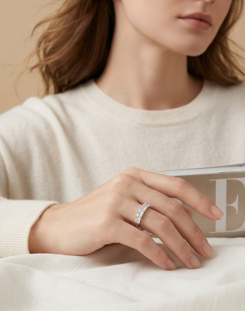 Anel Meia Aliança Navetes de Zircônia em Prata 925