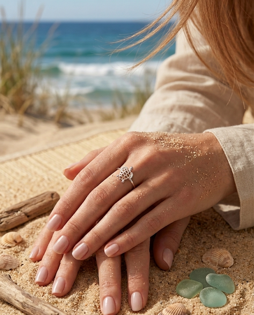 A tartaruga é um símbolo milenar de paciência, sabedoria e proteção. Usar este anel é carregar consigo um lembrete constante de calma e conexão com as águas do oceano.