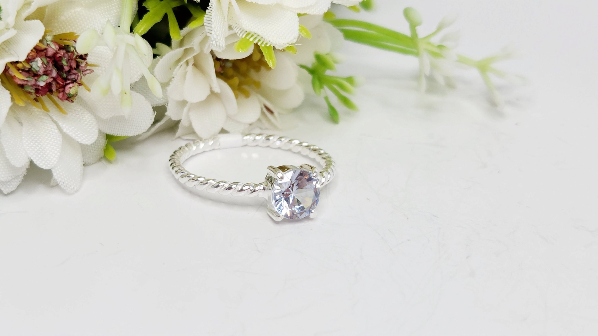 Anel Torcido com Solitário Quadrado em Prata 925, Aro 18