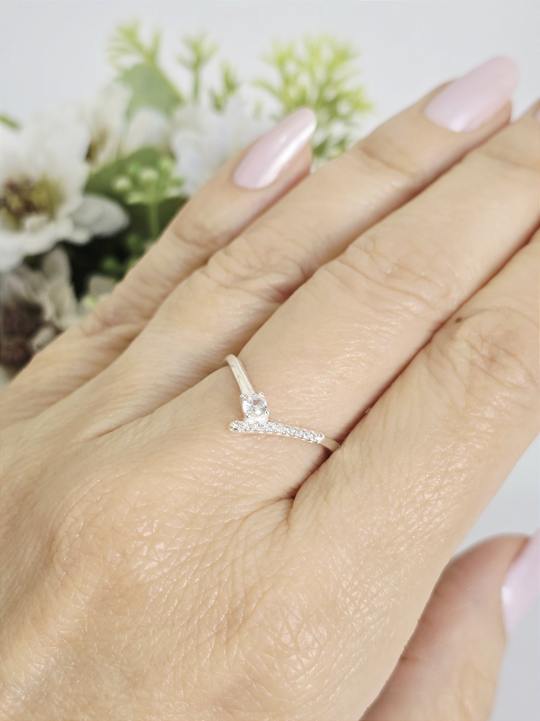 Com design moderno e delicado, este anel em Prata 925 apresenta formato em V, trazendo equilíbrio entre sofisticação e estilo. Possui um ponto de luz central em zircônia, acompanhado por pequenas pedras cravejadas que acrescentam brilho sutil e refinado. Versátil, pode ser usado sozinho como peça de destaque ou combinado em composições elegantes. Produzido em Prata 925, é resistente, hipoalergênico e mantém seu brilho ao longo do tempo.