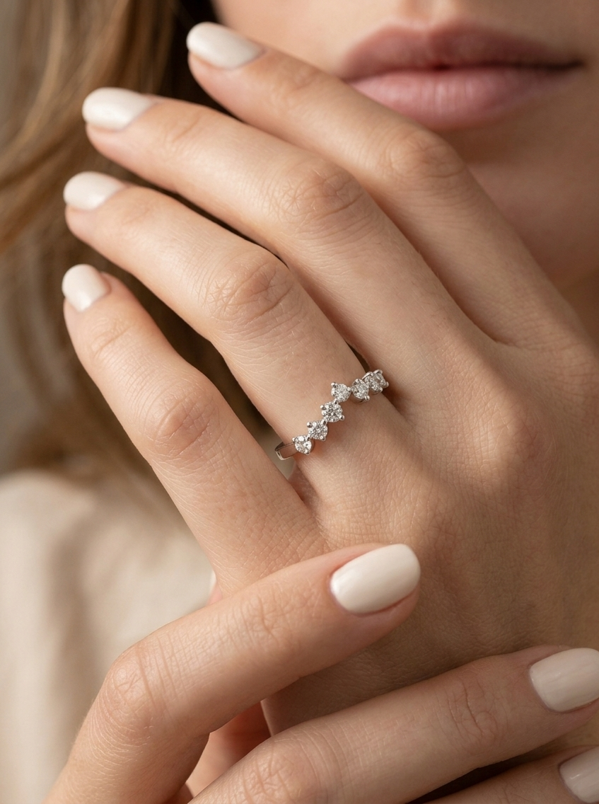 O anel apresenta acabamento polido que realça a beleza da prata e das pedras, com design leve e confortável para usar o dia todo. A simplicidade do formato V é realçada pelo brilho das zircônias, que adicionam um toque sofisticado ao acessório.