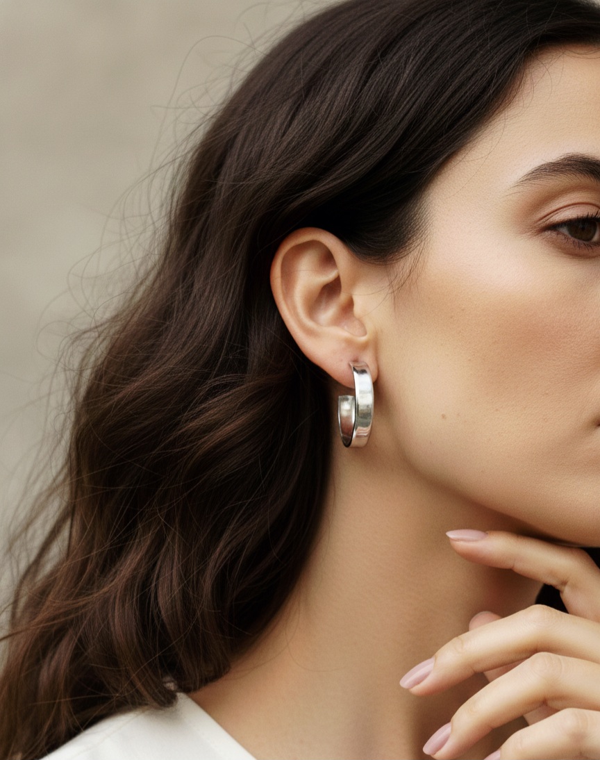 A Argola Larga Estilo Bold é um clássico reinventado que combina sofisticação, durabilidade e modernidade. Com um design de aro mais espesso e volumoso (bold), esta peça é fabricada em Aço Inoxidável, garantindo alta resistência, durabilidade e sendo totalmente hipoalergênica.