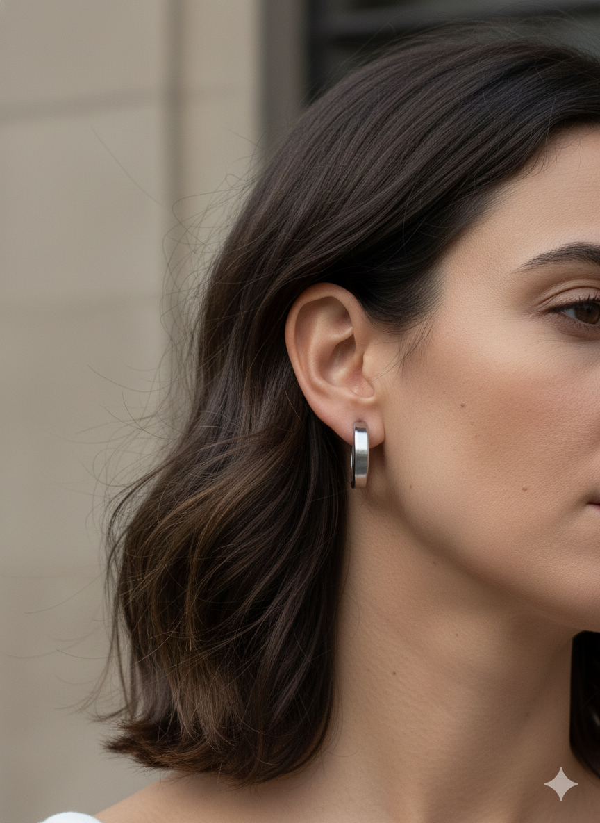 A Argola Larga Tubo Lisa é a definição de elegância minimalista com presença. Seu design em formato de tubo largo e acabamento liso e polido cria um visual moderno, clean e sofisticado, sendo um acessório indispensável para quem ama peças atemporais e de alta qualidade.