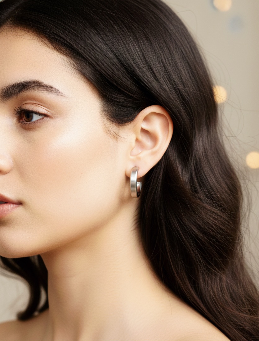 Equilíbrio perfeito entre modernidade e versatilidade, a Argola Média Reta Lisa é um clássico reinventado. Seu formato de espessura média com superfície plana e acabamento polido cria um visual clean e sofisticado, ideal para o dia a dia e para compor mixes de brincos.