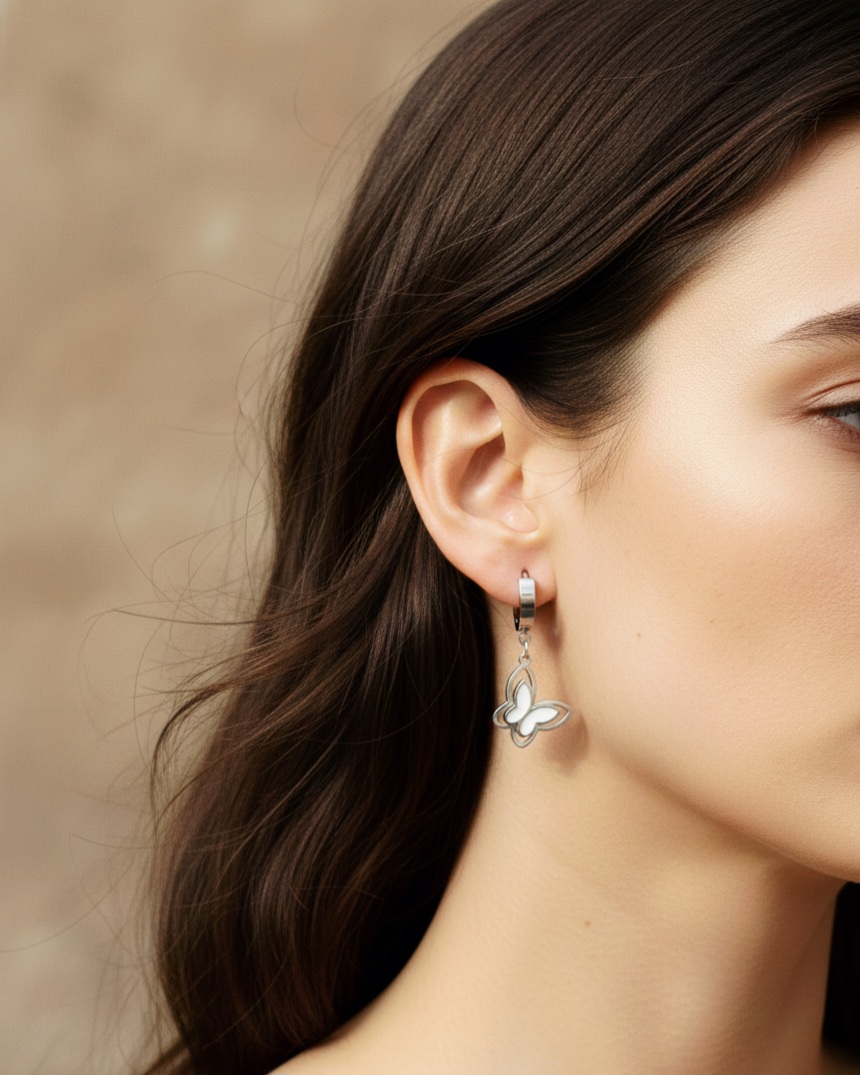 O Brinco Argola Click Borboleta é uma joia moderna e delicada que adiciona um toque de transformação e leveza ao seu visual. O pingente de borboleta apresenta um lindo acabamento em Madrepérola (ou resina aperolada), que contrasta com o brilho da argola.