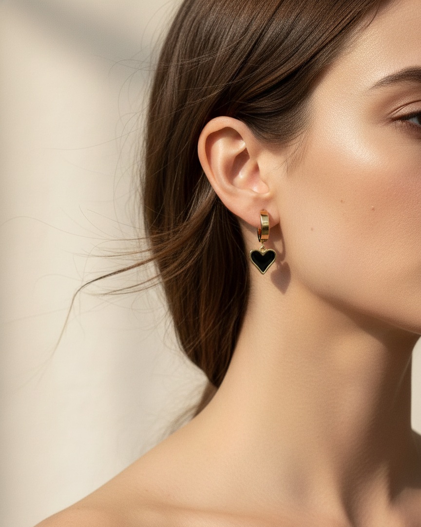 Brinco Argola Click com Pingente Banhado a Ouro Aço Inox