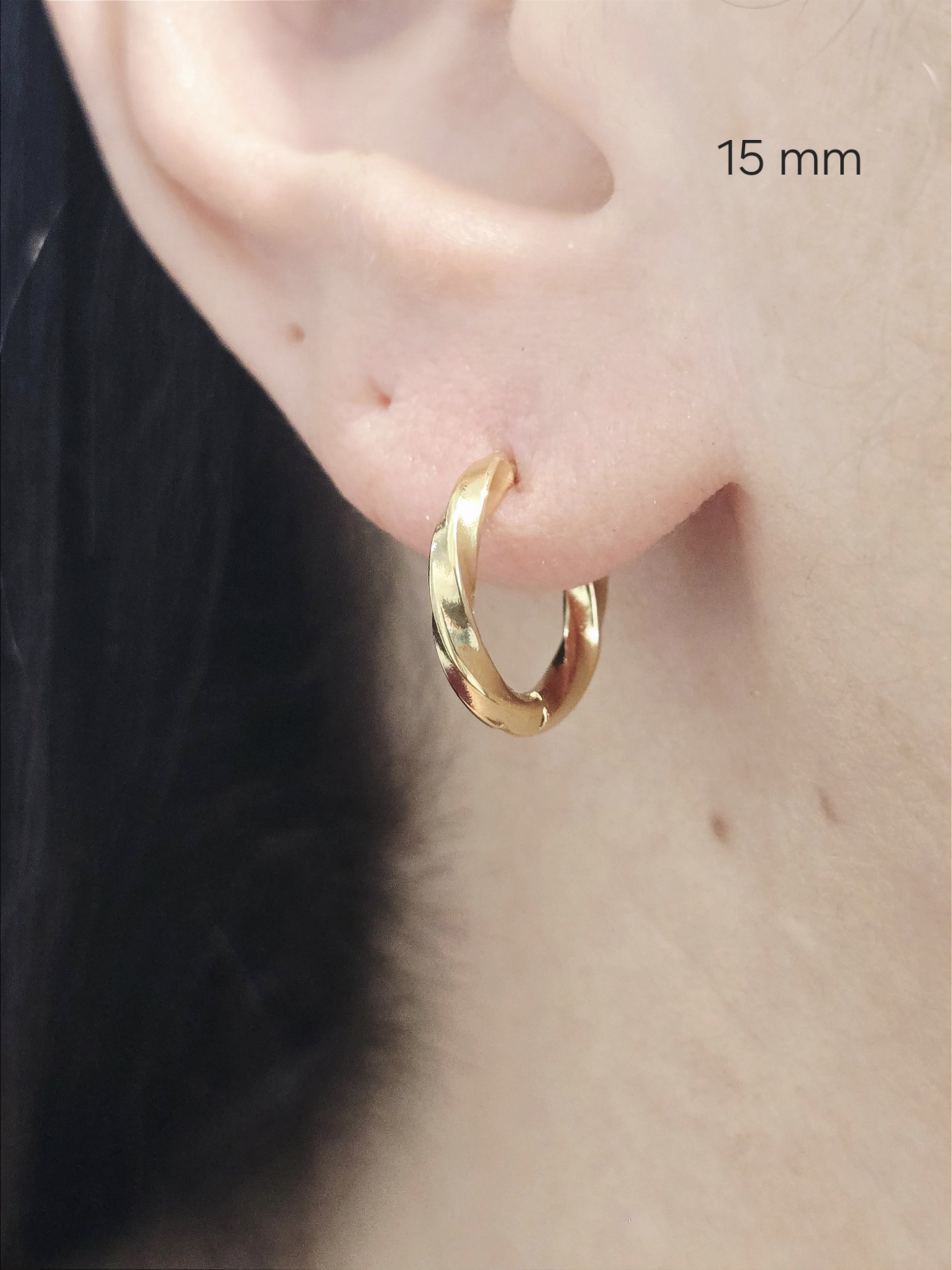 Seu design torcido e acabamento espelhado realçam o brilho do dourado, garantindo um charme delicado e versátil. Fabricado em aço inoxidável de alta qualidade, é hipoalergênico, resistente à água e não perde o brilho com o tempo.