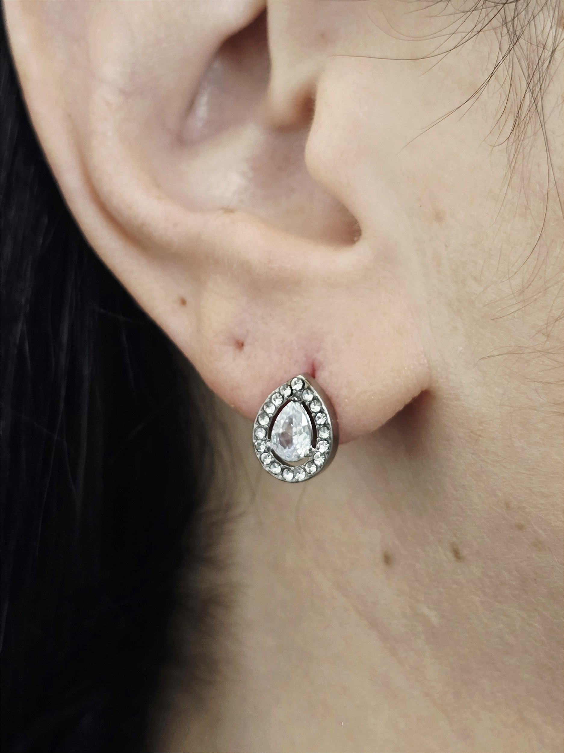 Brinco Gota Cravejada em Aço Inoxidável