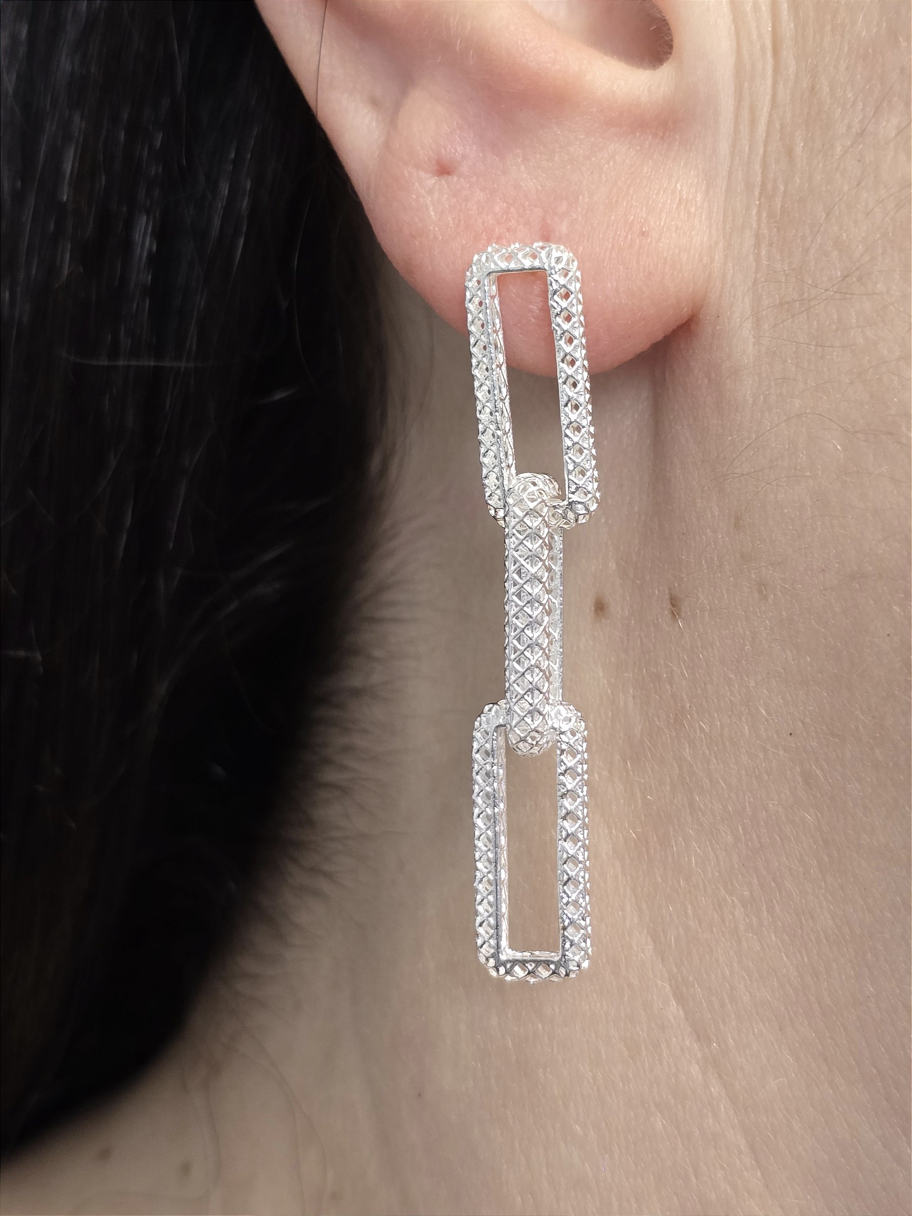 Com design geométrico e contemporâneo, o Brinco Retângulos Articulados em Prata 925 é a escolha ideal para quem busca sofisticação com um toque moderno. Seus elos retangulares com textura diamantada criam um efeito de brilho único, destacando-se em qualquer ocasião. Produzido em prata legítima 925, é hipoalergênico, resistente e mantém seu brilho por muito mais tempo. Um acessório versátil que combina com looks elegantes ou despojados, garantindo presença e estilo.