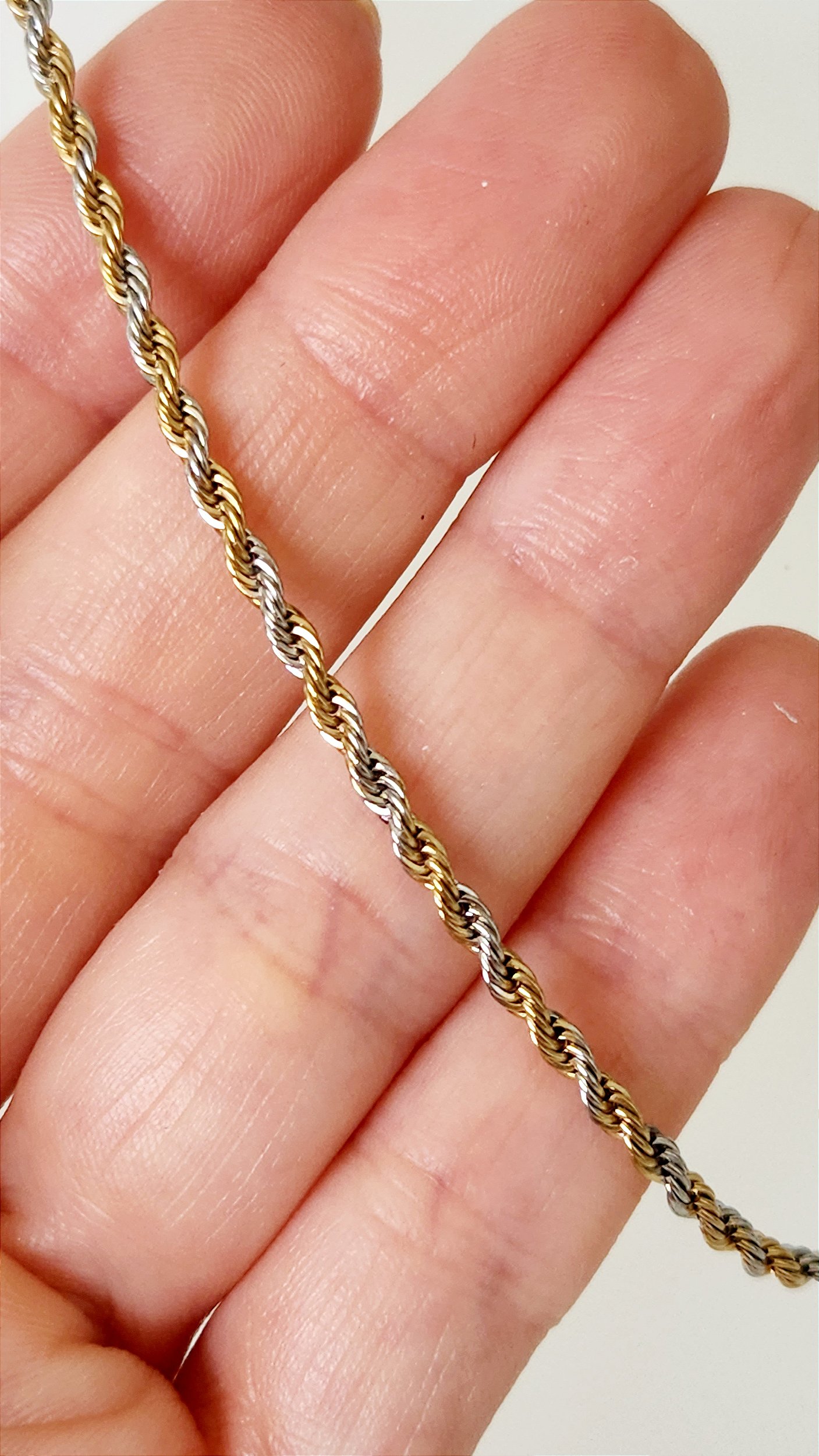 Chocker Cordão Baiano Dourado e Prateado em Aço Inoxidável, 45 cm