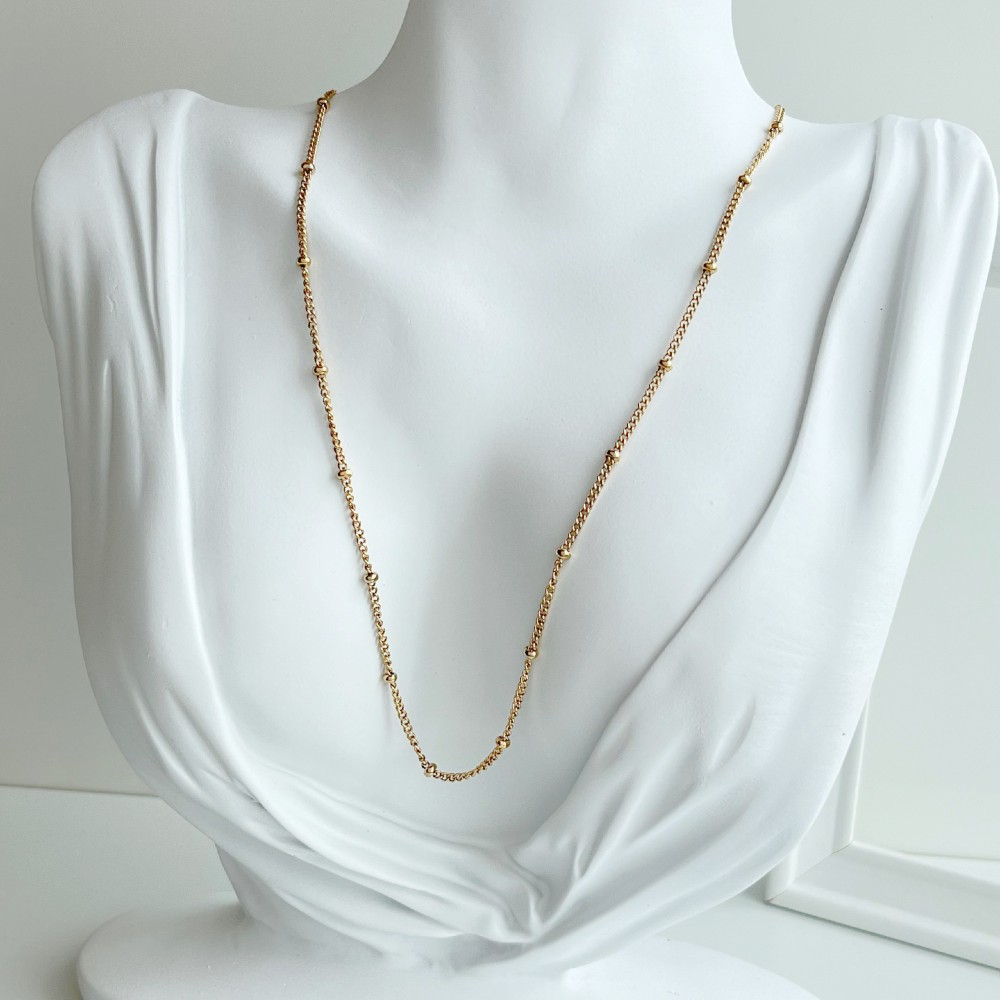 Colar Bolinhas em Aço Banhado a Ouro - 60 cm