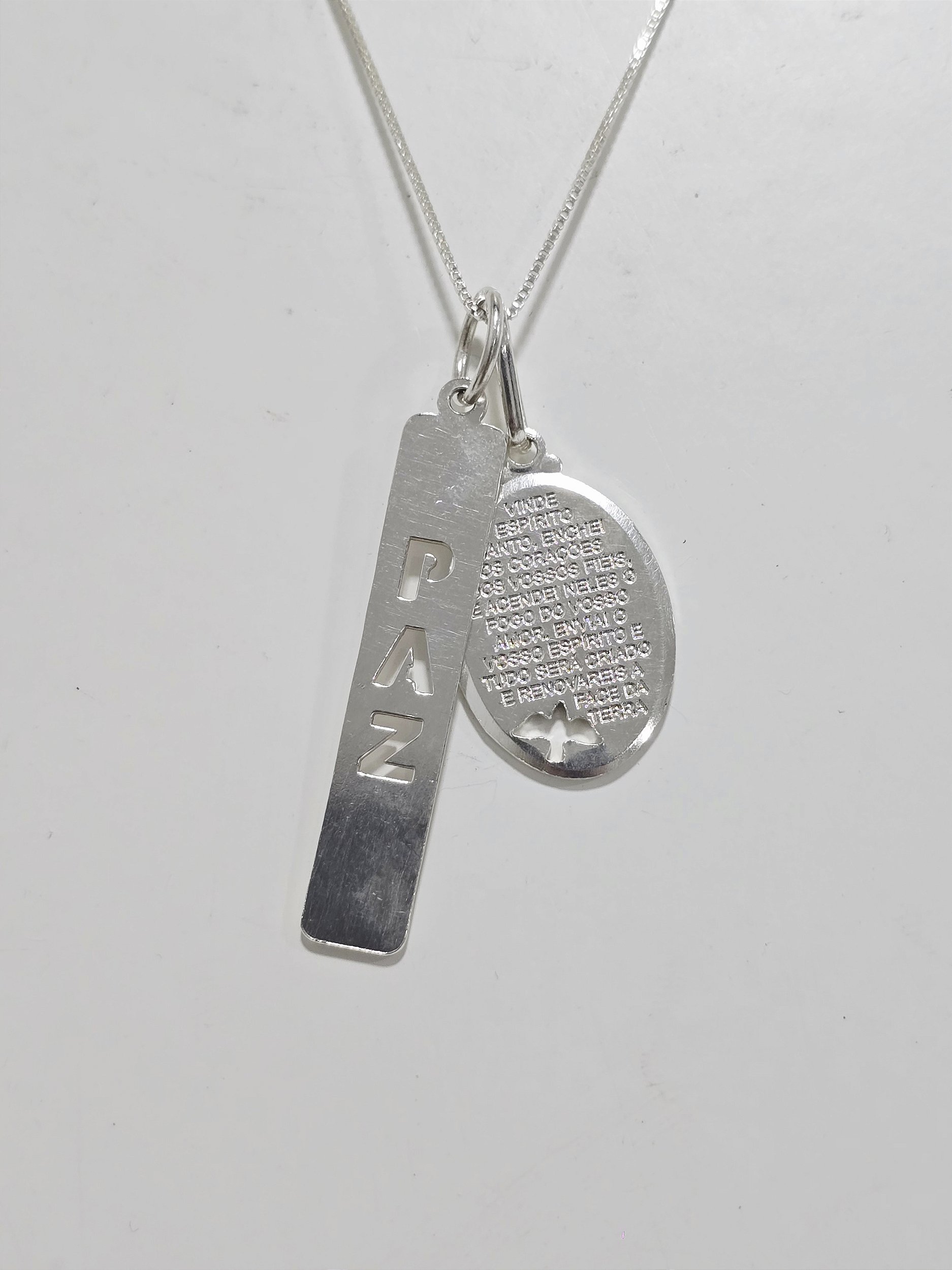 Colar Oração do Espirito Santo e Paz em Prata 925