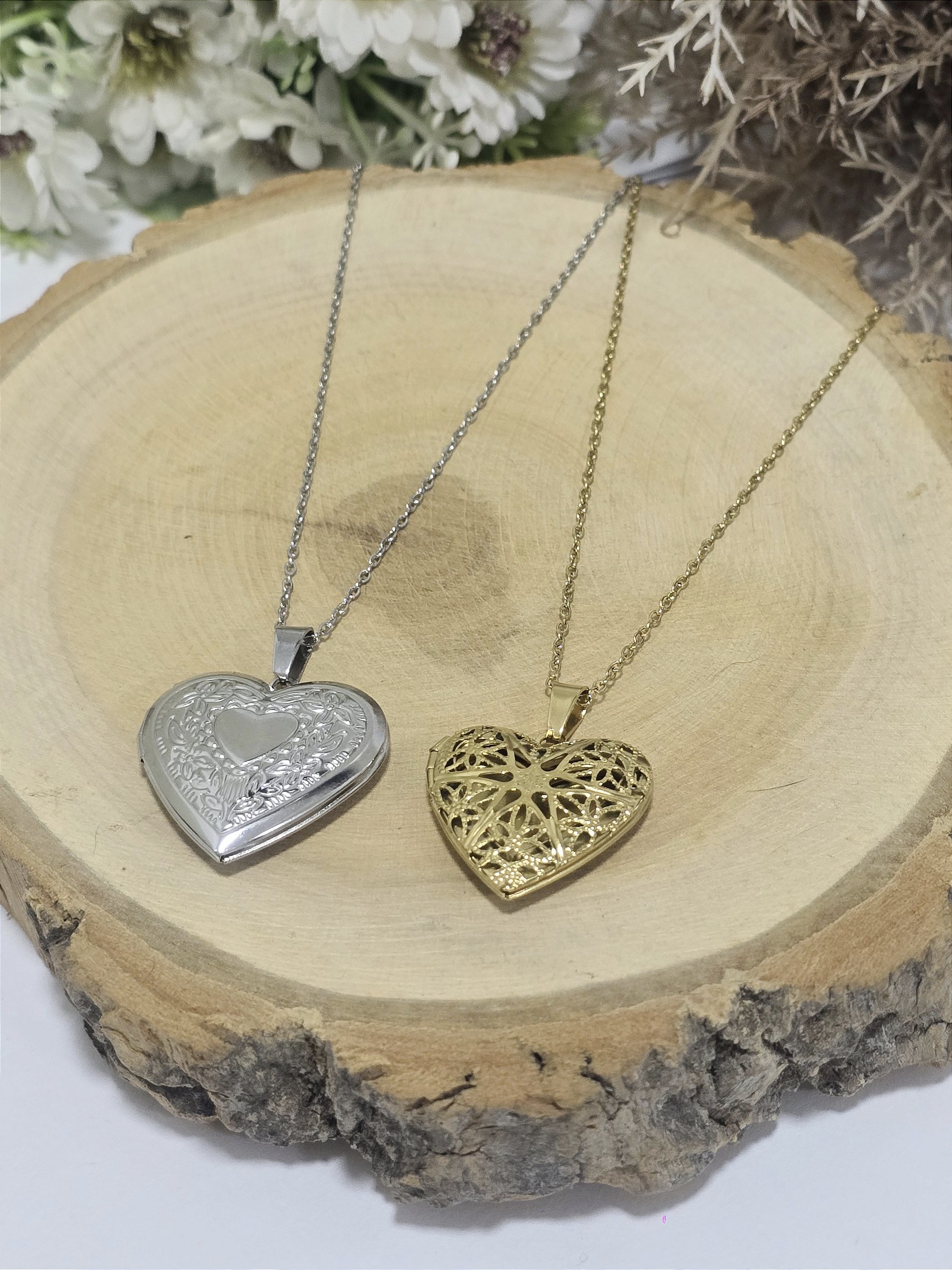 Colar Relicário de Coração em Aço Inoxidável - 55 cm + 5 cm de extensor