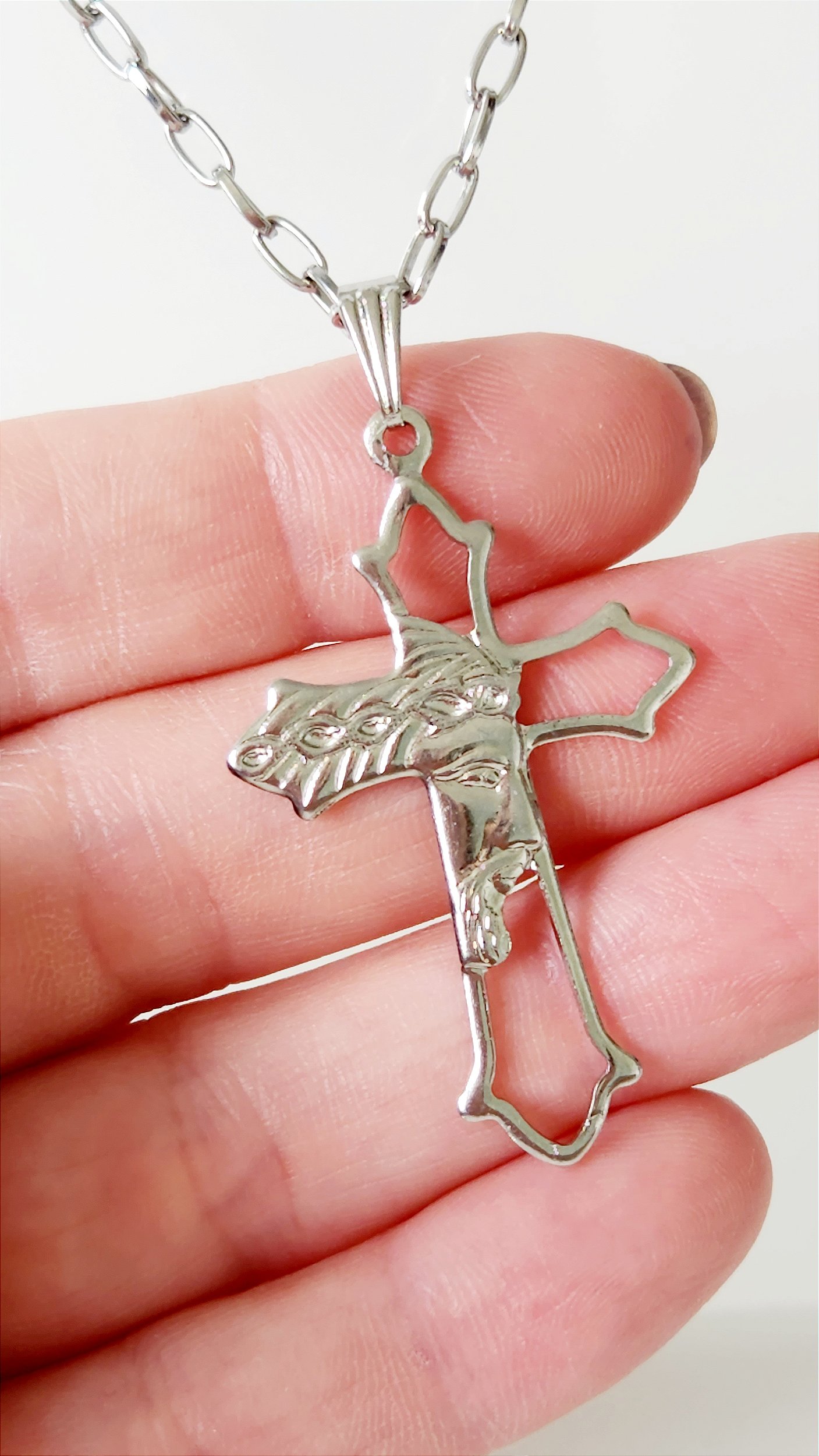 Colar Longo com Pingente de Cruz em Aço Inoxidável