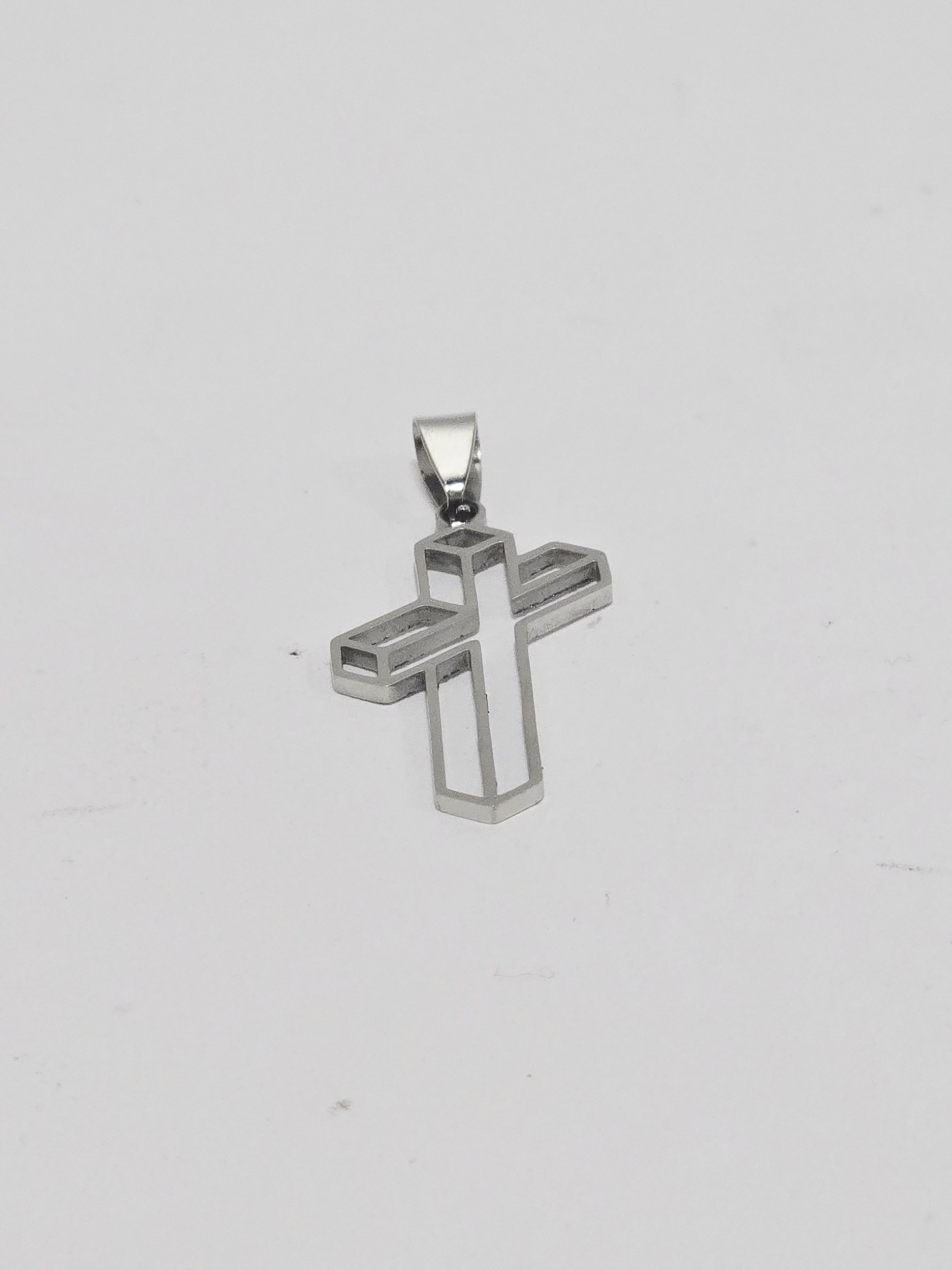 Pingente Cruz 3D em Aço Inoxidável - 4 cm