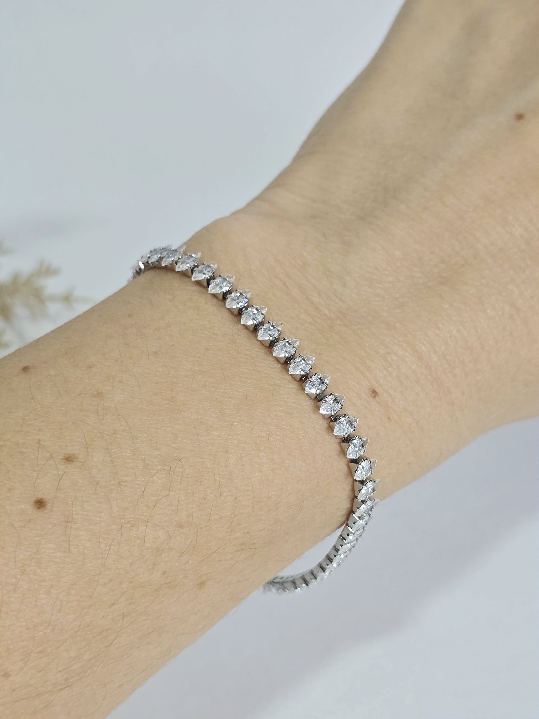 Pulseira confeccionada em aço inoxidável com zircônias lapidadas em formato navete, que refletem a luz com intensidade e sofisticação. Seu design clássico e atemporal transmite elegância, ideal para quem busca um acessório refinado e versátil. Produzida em aço inoxidável legítimo, é hipoalergênica, altamente resistente e não oxida, mantendo brilho e beleza por muito mais tempo.