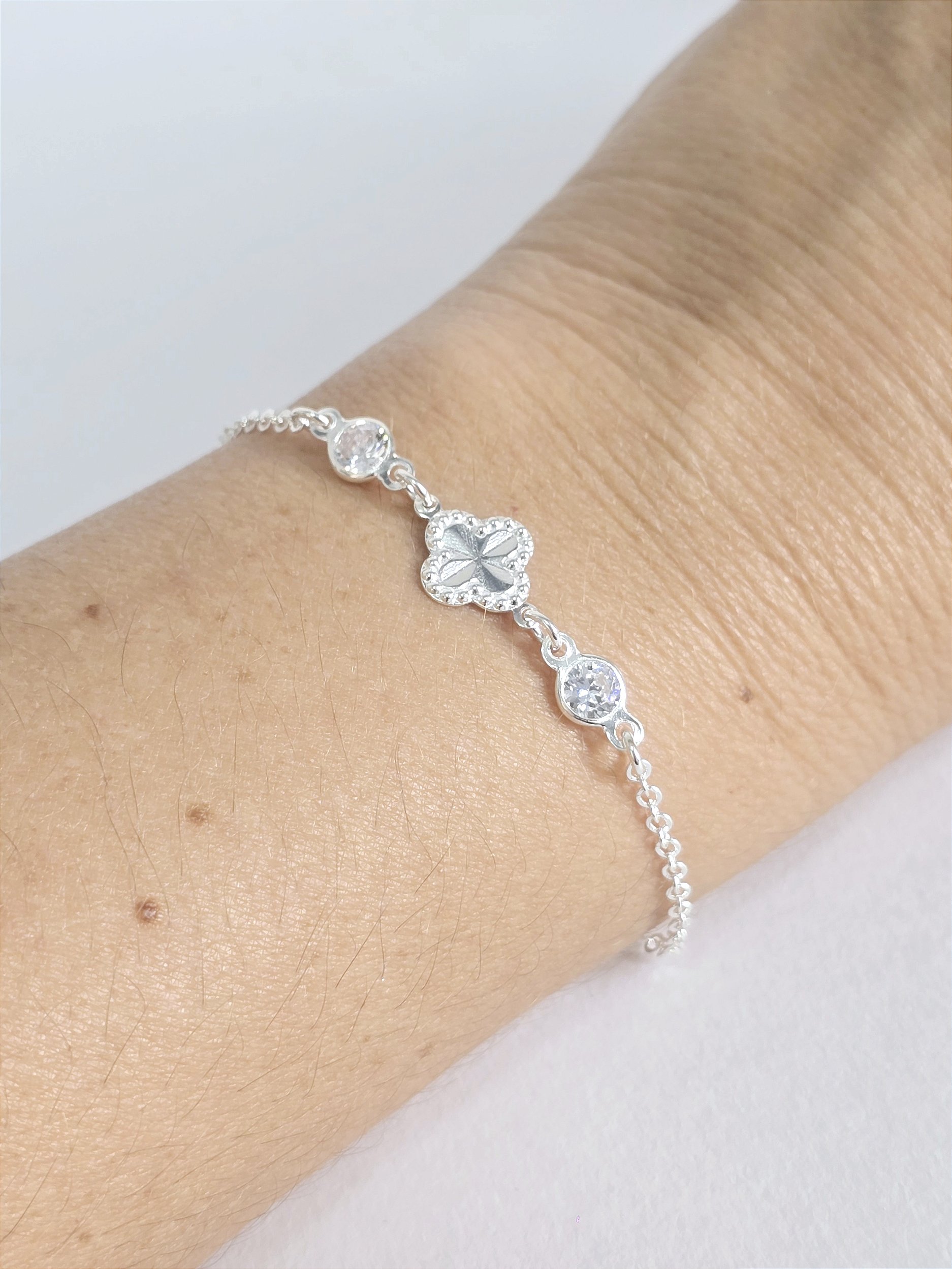 Pulseira Trevo com Dois Pontos de Luz em Prata 925 - 19 cm com possibilidade de ajustar em 18 cm