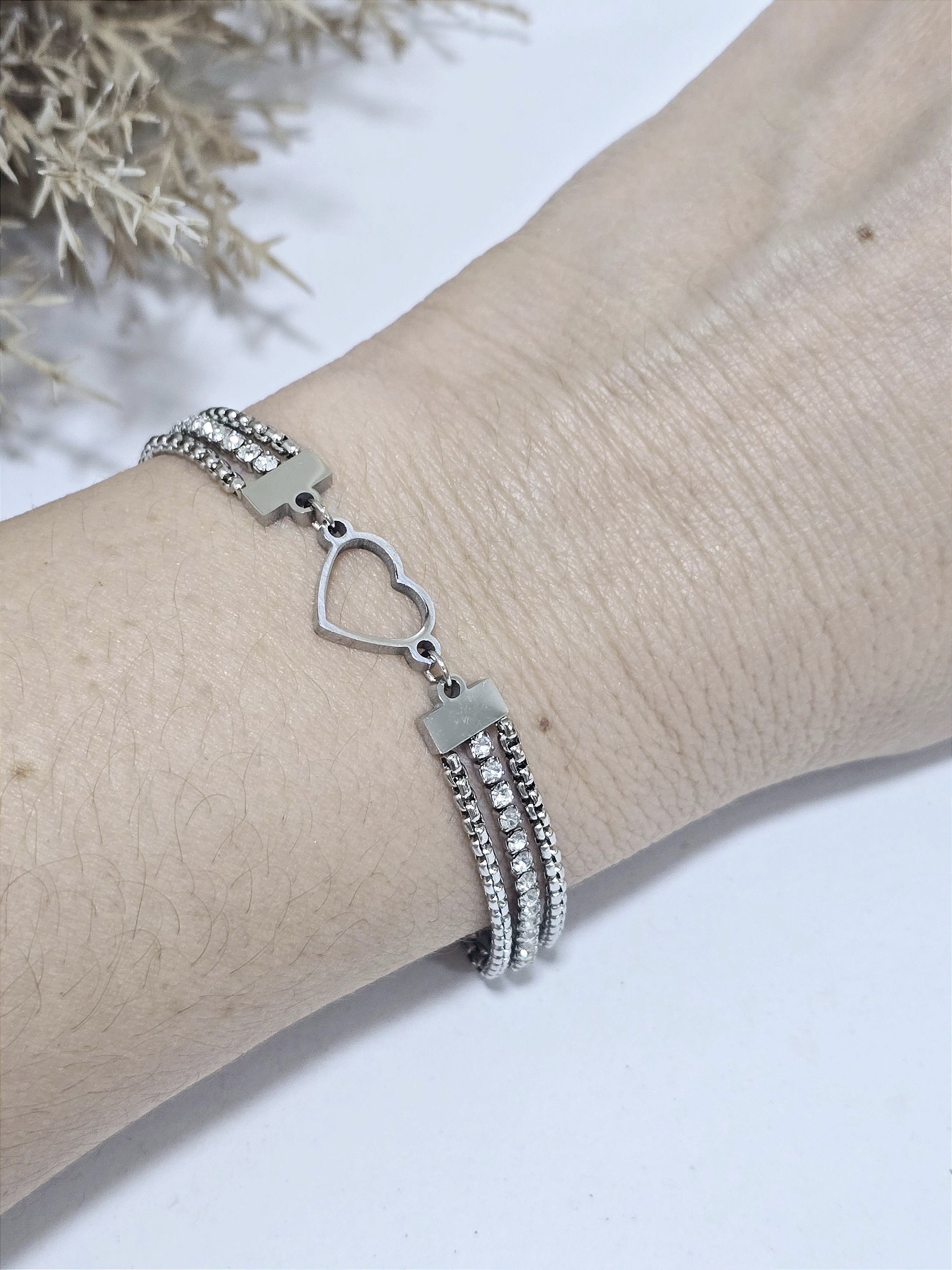 Pulseira Tripla com Coração Vazado em Aço Inoxidável