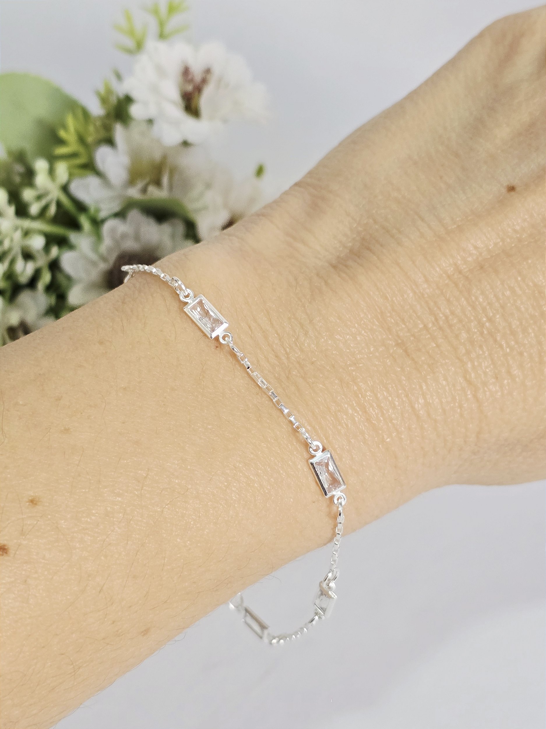 A Pulseira em Prata 925 com Zircônias Retangulares Transparentes é uma joia minimalista e sofisticada. Suas pedras lapidadas em formato retangular oferecem brilho elegante e delicado, perfeito para compor tanto looks casuais quanto produções mais refinadas. Atemporal, versátil e hipoalergênica, é aquela peça curinga que não pode faltar no porta-joias.