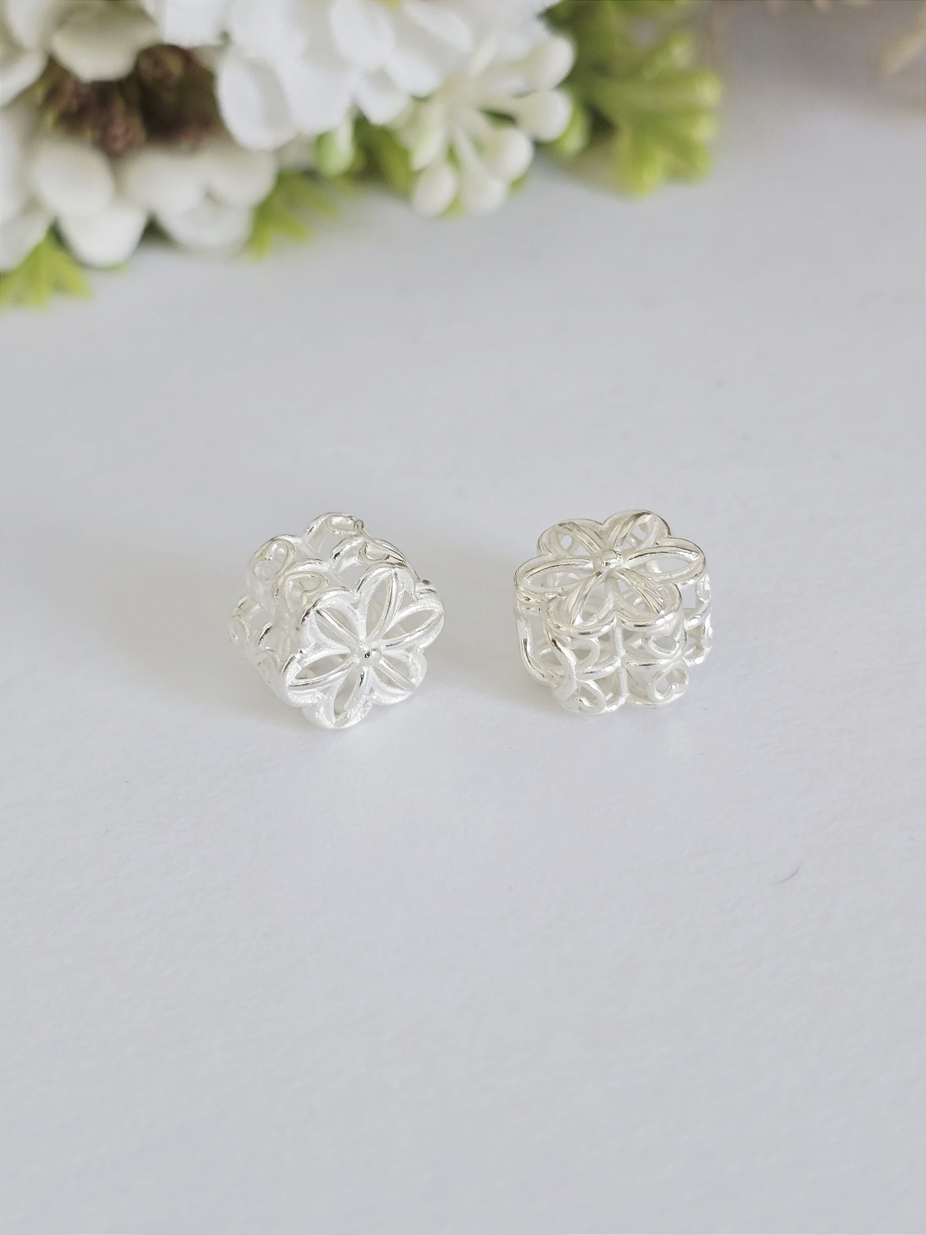 O Separador Flor Vazado em Prata 925 traz leveza e delicadeza ao design de pulseiras e berloques. Seu formato cilíndrico é trabalhado com flores vazadas em alto-relevo, criando um efeito rendado sofisticado. Produzido em prata legítima 925, é hipoalergênico, resistente e perfeito para composições cheias de charme e personalidade.