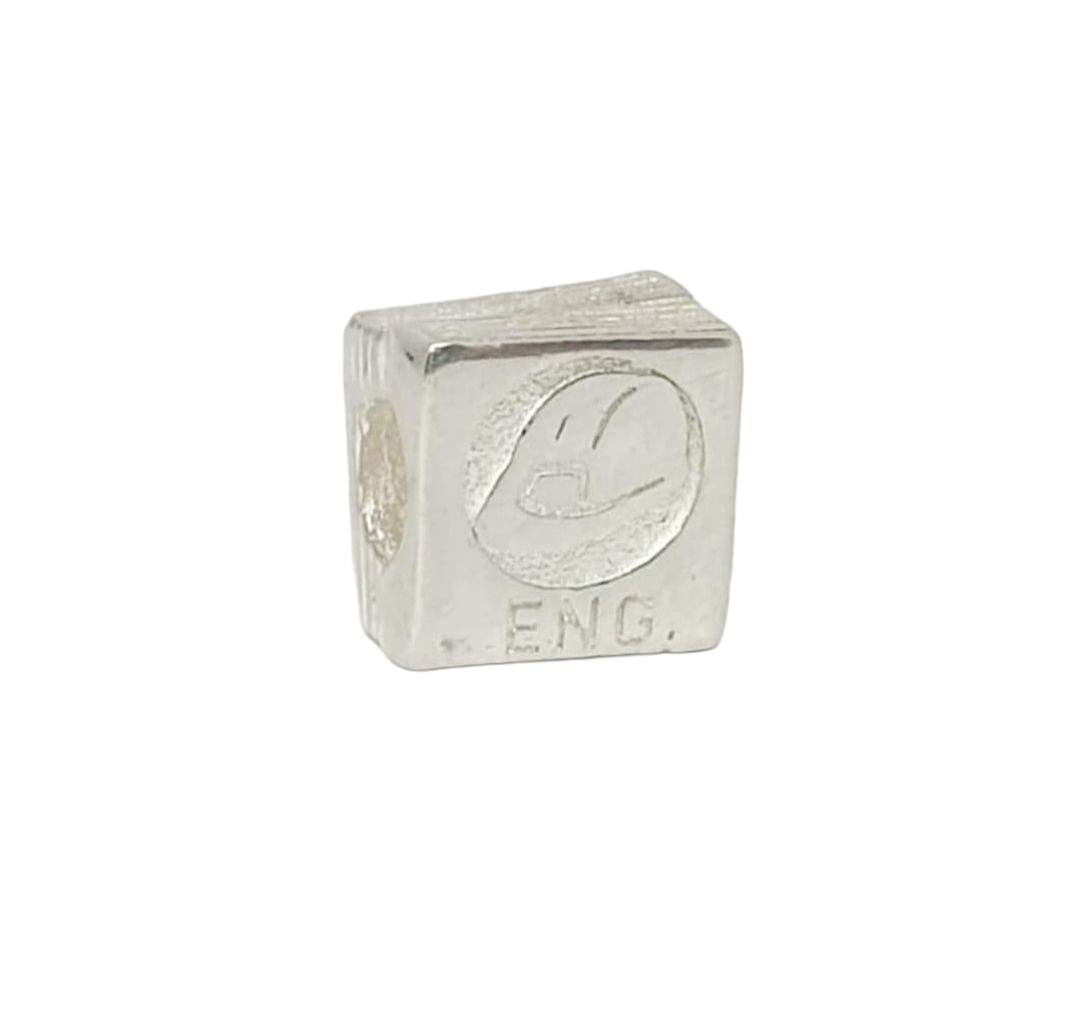 Separador em prata 925 em forma de tijolo com a estampa de um capacete que representa a engenharia civil.