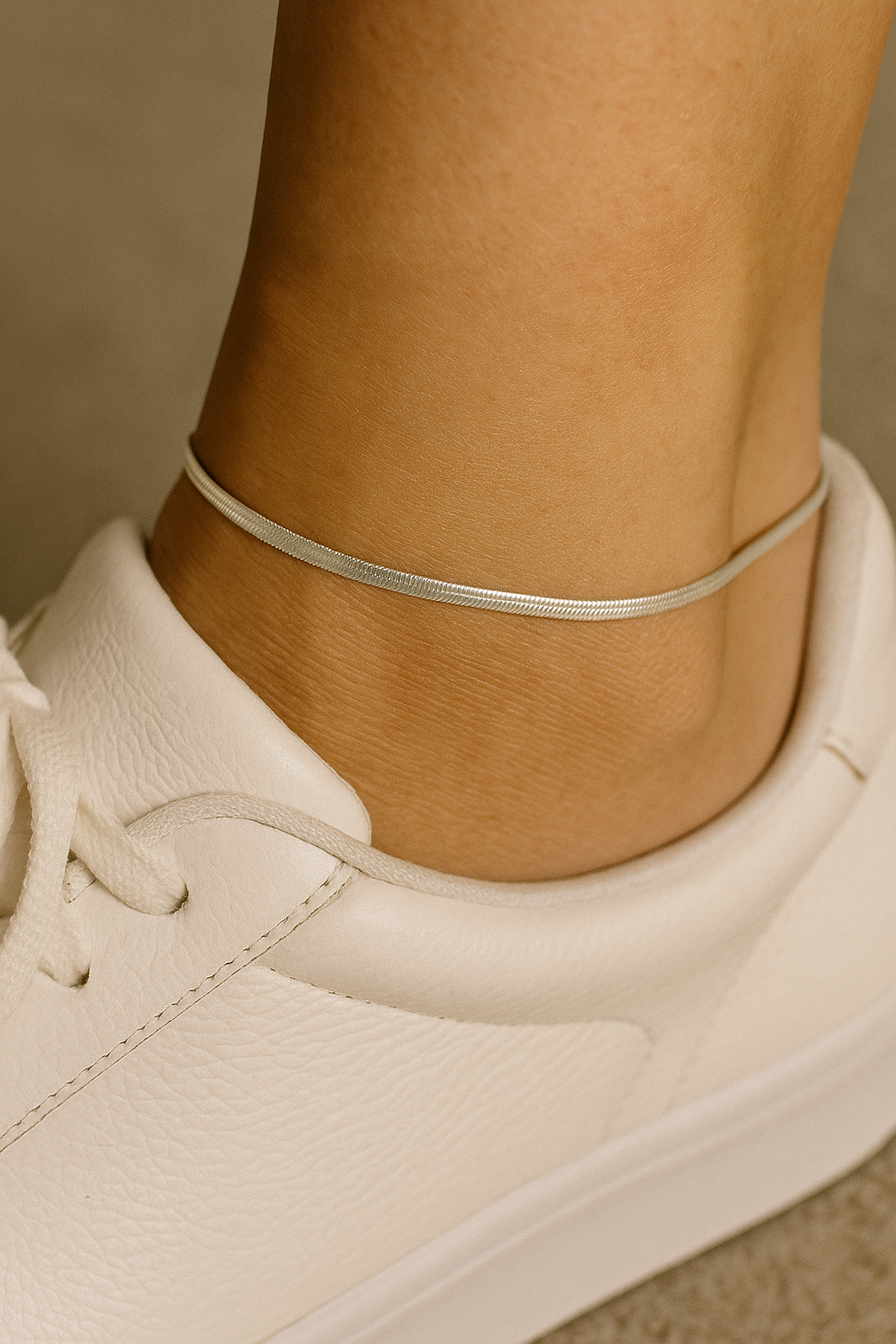 A Tornozeleira Laminada em Prata 925 é o acessório ideal para quem busca delicadeza e estilo em cada detalhe. Com design fino e acabamento laminado que reflete a luz com sutileza, transmite sofisticação e modernidade. Pode ser usada sozinha para um visual clean ou combinada com outras tornozeleiras para um mix cheio de personalidade. Atemporal, hipoalergênica e resistente, é perfeita para destacar o tornozelo em qualquer ocasião.