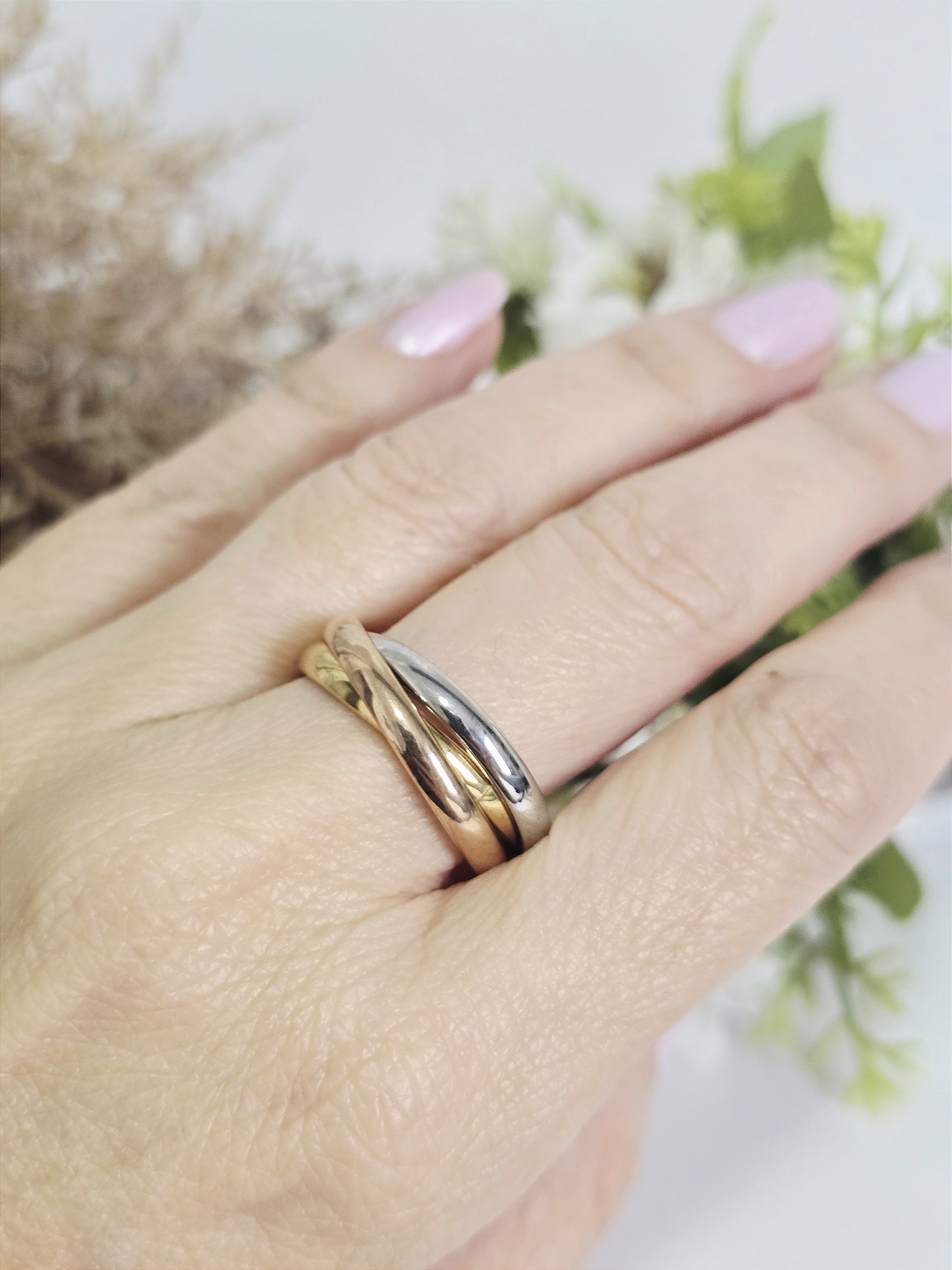 O Trio de Anéis Entrelaçados em Aço Inoxidável é sinônimo de sofisticação e estilo. Com três aros interligados nas cores prata, dourado e rosé, representa a harmonia e a união perfeita entre elegância e modernidade. Seu design liso e polido reflete a luz com delicadeza, garantindo brilho e presença em qualquer ocasião. Produzido em aço inoxidável, é hipoalergênico, resistente e não oxida, mantendo o acabamento impecável por muito mais tempo.